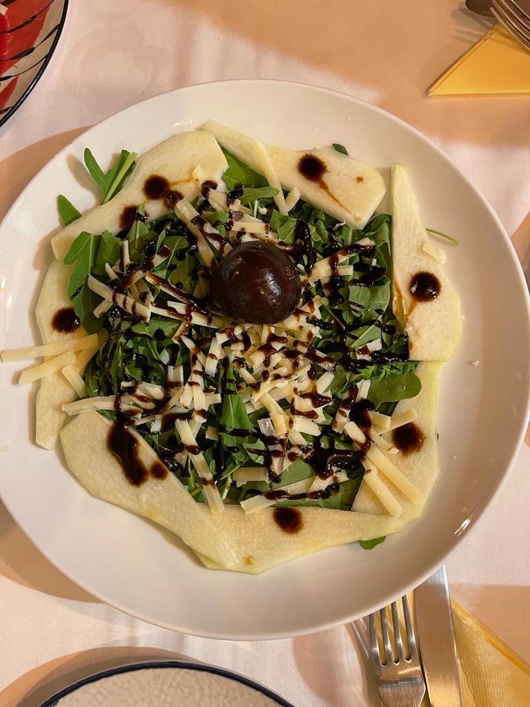 The restaurant’s menu also offers lighter options that still feel special. The Ensalada de Pera E Higos brings together pear and figs in a refreshing combination that feels both seasonal and vibrant. It’s the kind of salad that works well as a starter or a light meal on a warm day. Meanwhile, those in the mood for comfort food will appreciate the Espaguetis Carbonara, which arrives creamy and satisfying without feeling overly heavy.